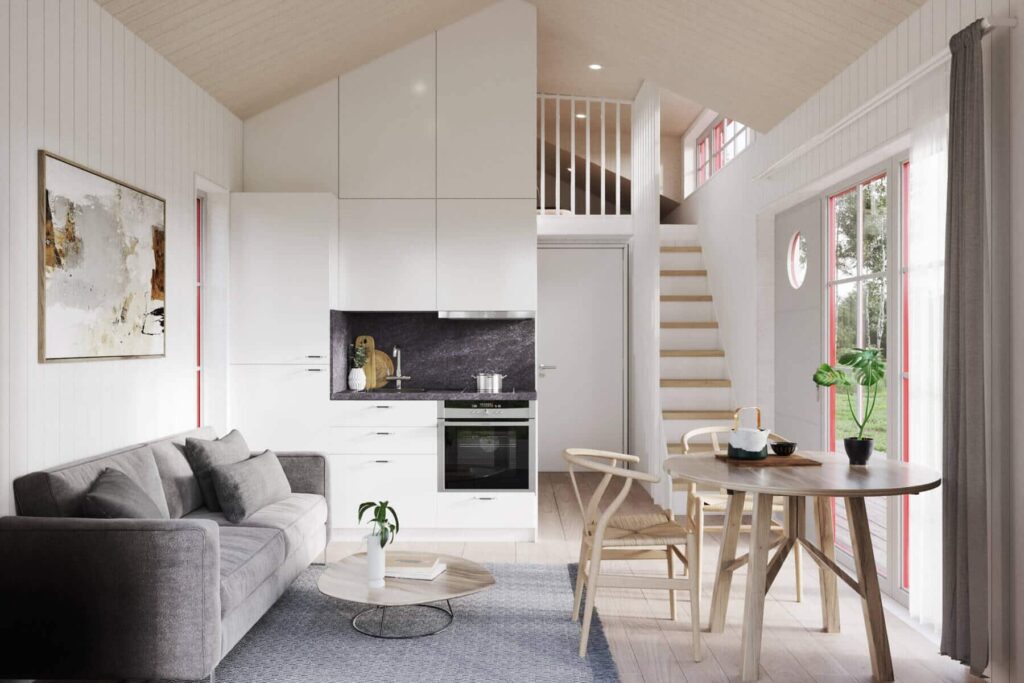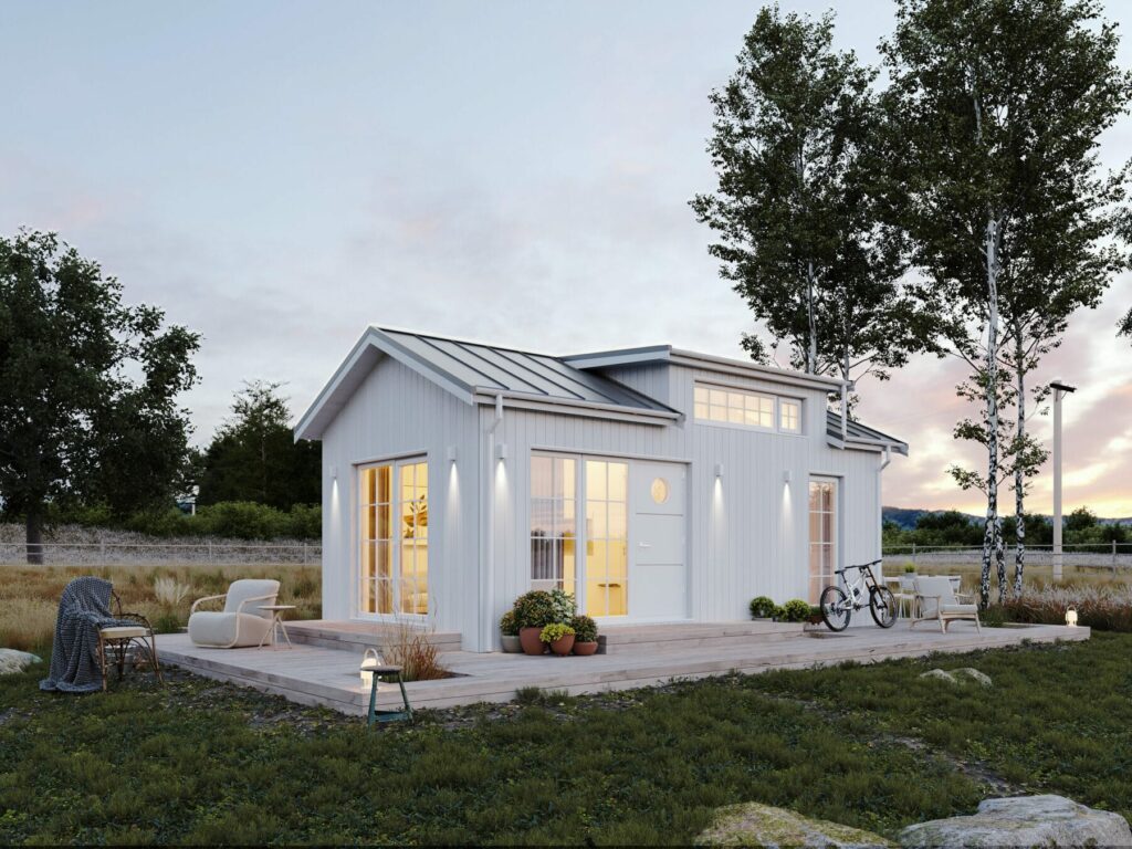 Dessa exempelbilde är från husverket.se och visar hur fint och komplett ett Attefallshus kan vara. Just dessa bilder visar modellen Panorama KR3.